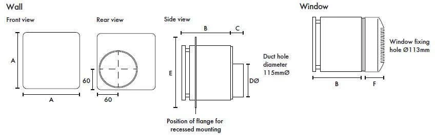 Models are available for surface or recessed mounting directly into standard 100mm diameter ducting. Suitable for panel, wall and ceiling installations and windows up to 25mm thick. For high rise or coastal applications, install through the wall with a Vent Cowl (Stock Ref 561403).